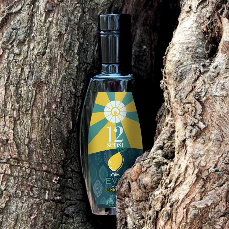 Olio EVO Bio 12Sensi aromatizzato al limone, dal sapore raffinato ed inconfondibile è ottenuto dalla frangitura contemporanea di olive appena raccolte e di limoni succosi e pregiati.